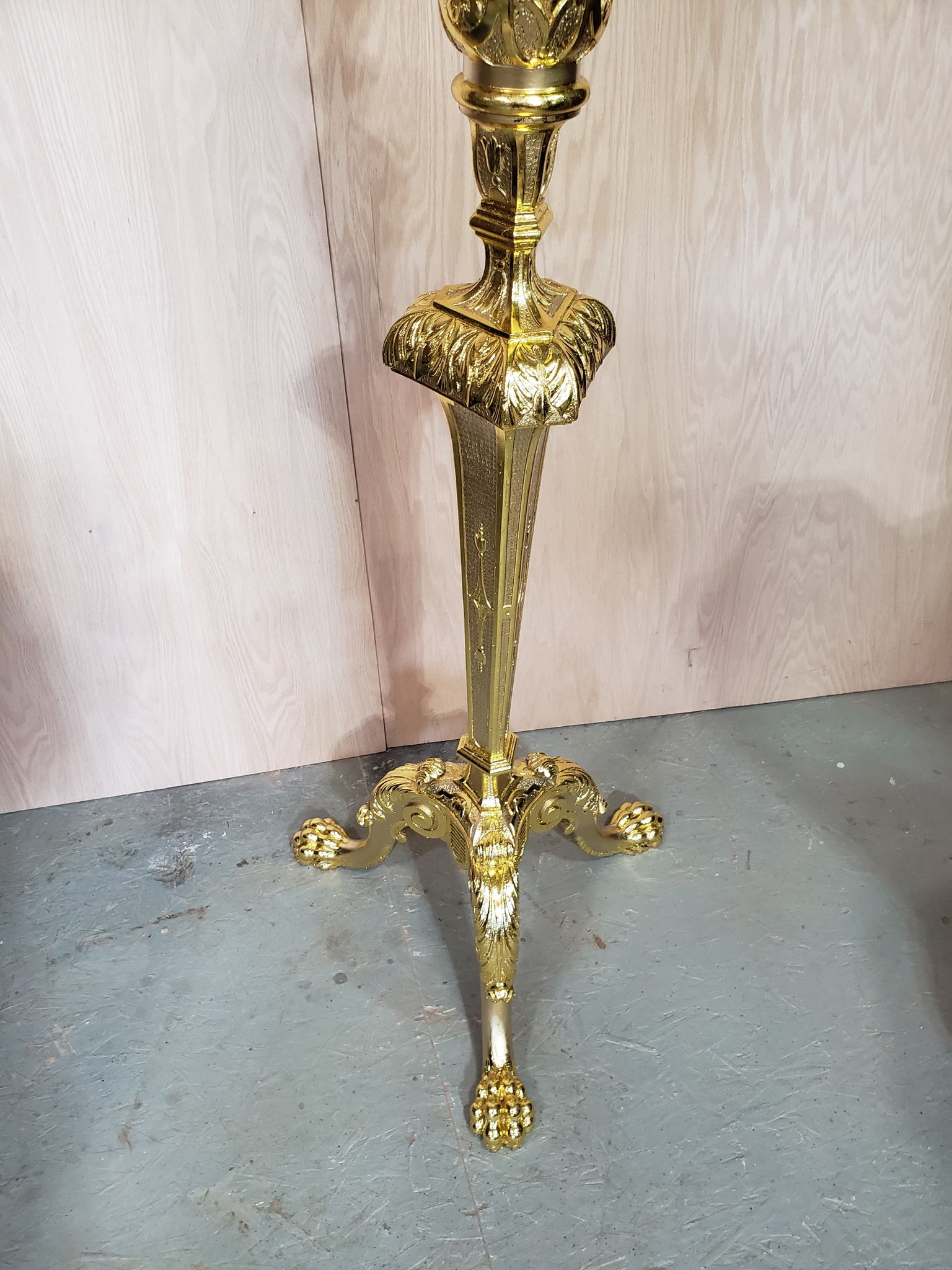 Renewal of a gilded flower stand. Missing elements of the flower stand were replaced, as well as a new layer of a gold-imitating material being laid out. This piece was renewed for a client. Product number: 001 |