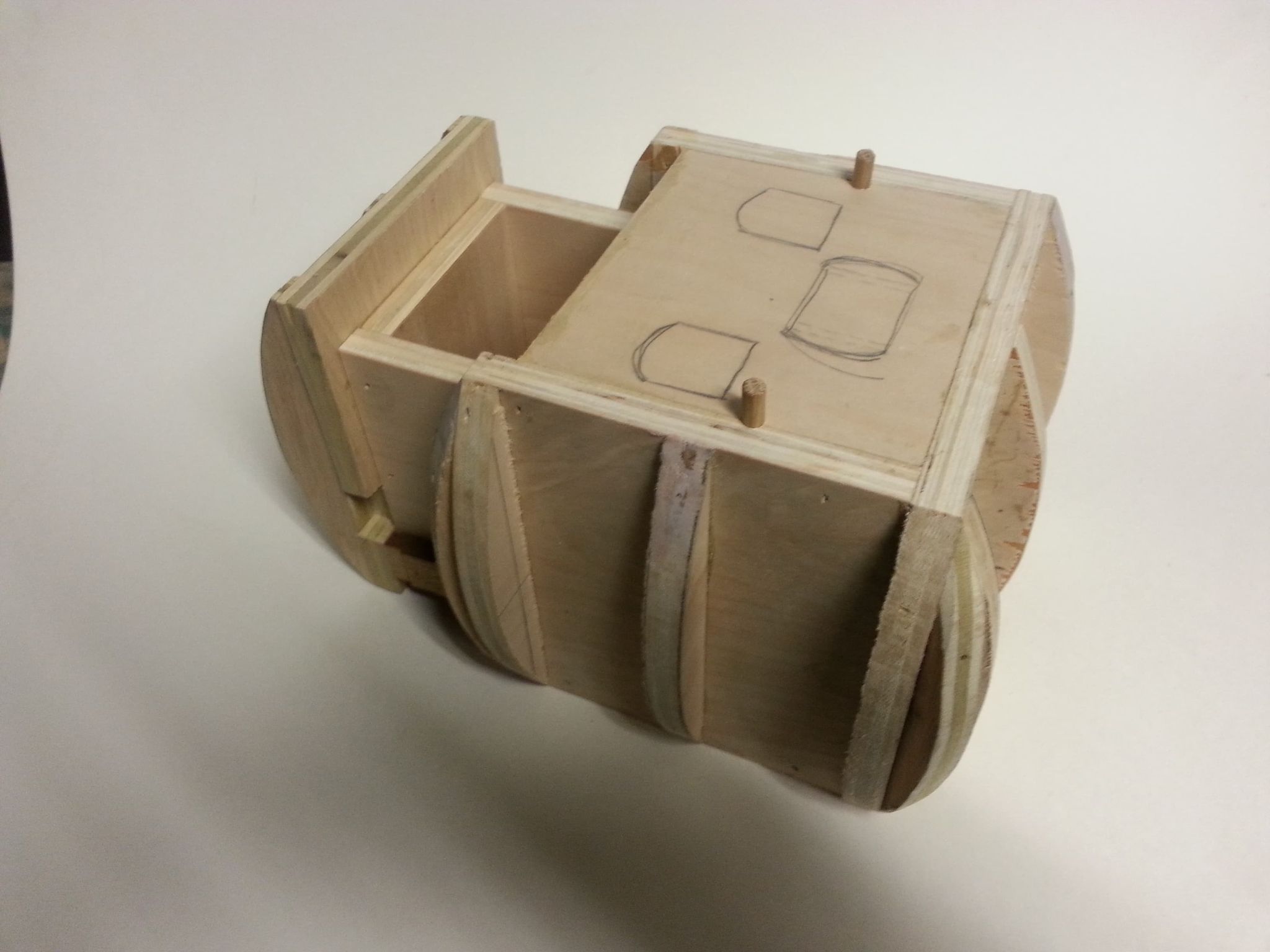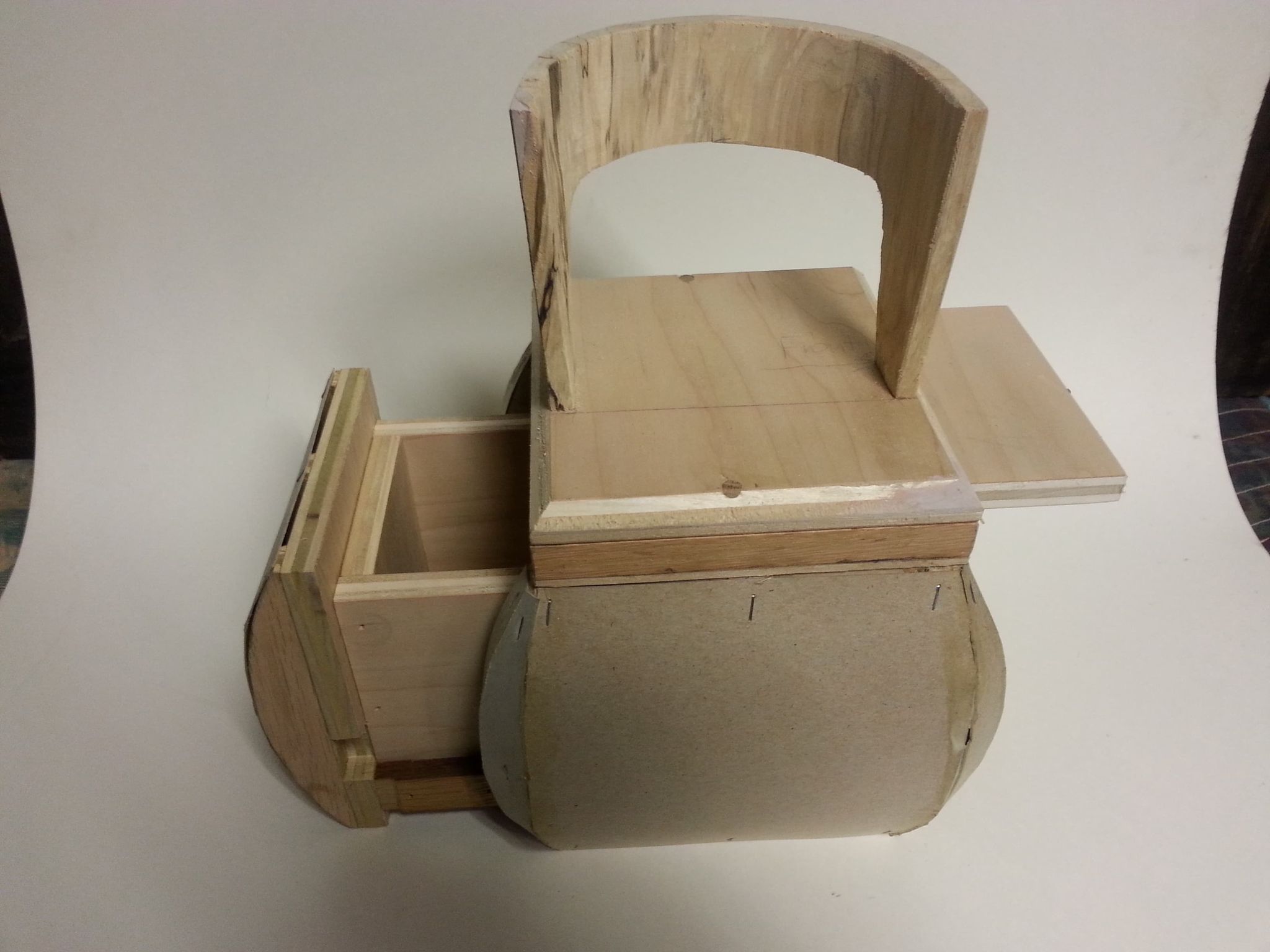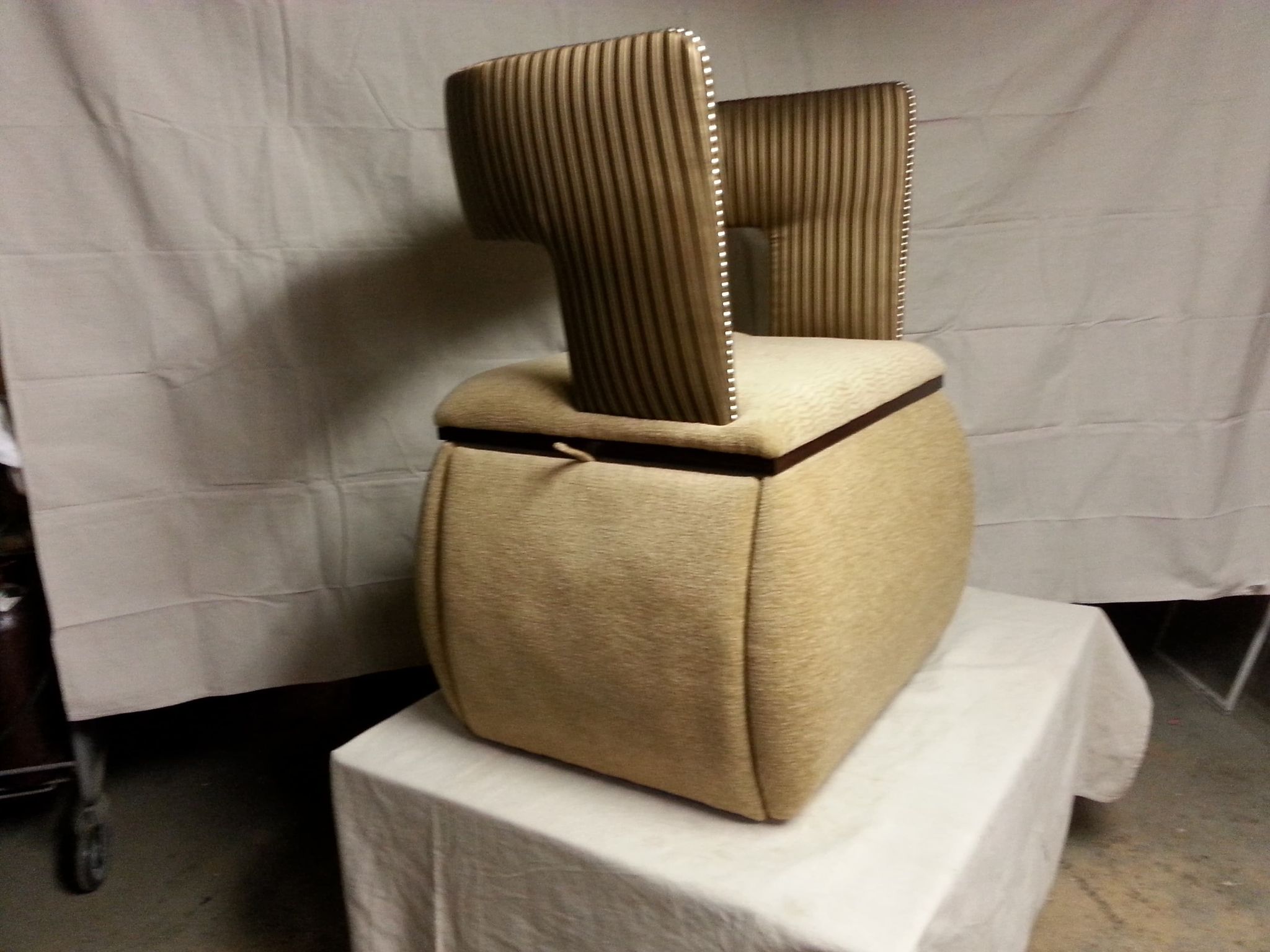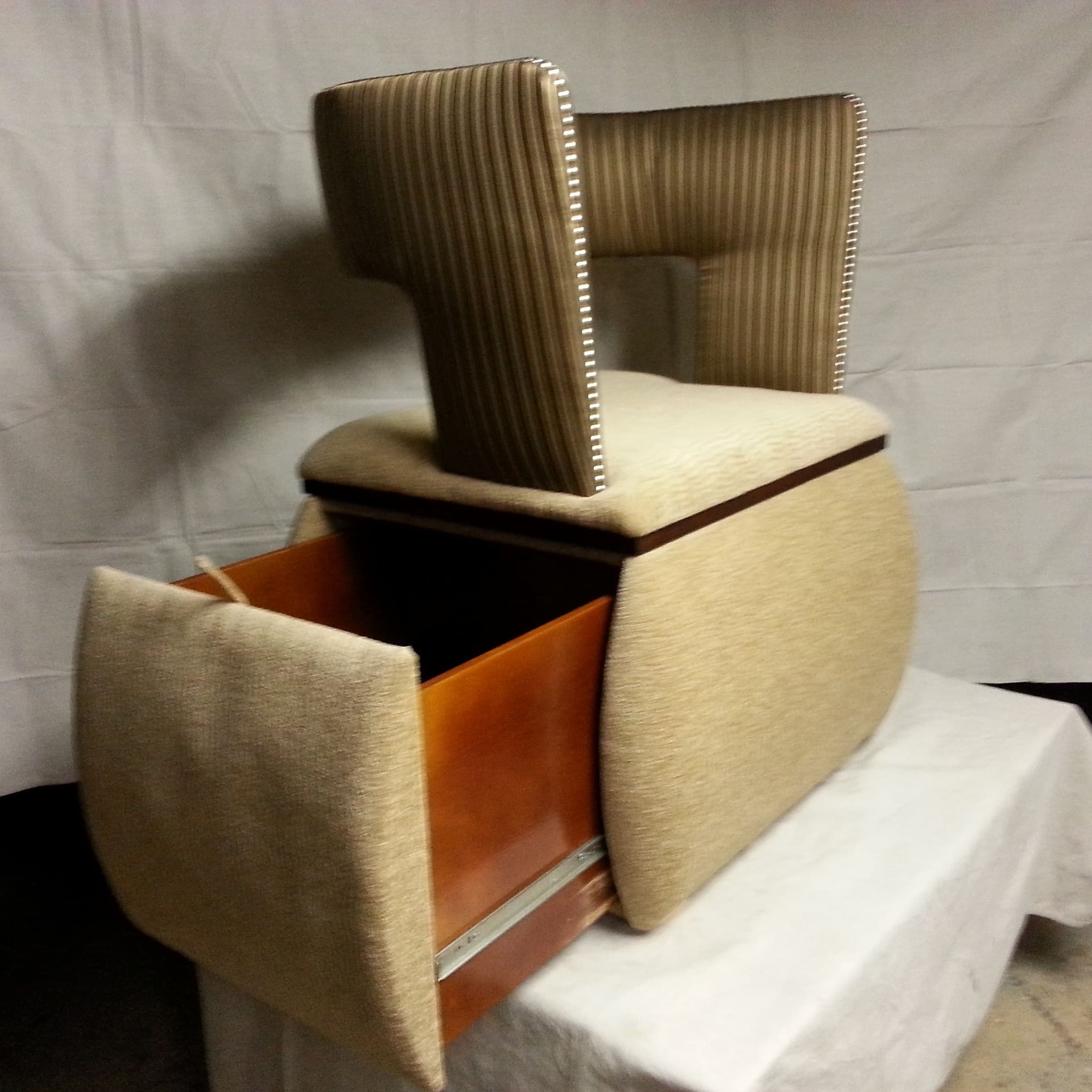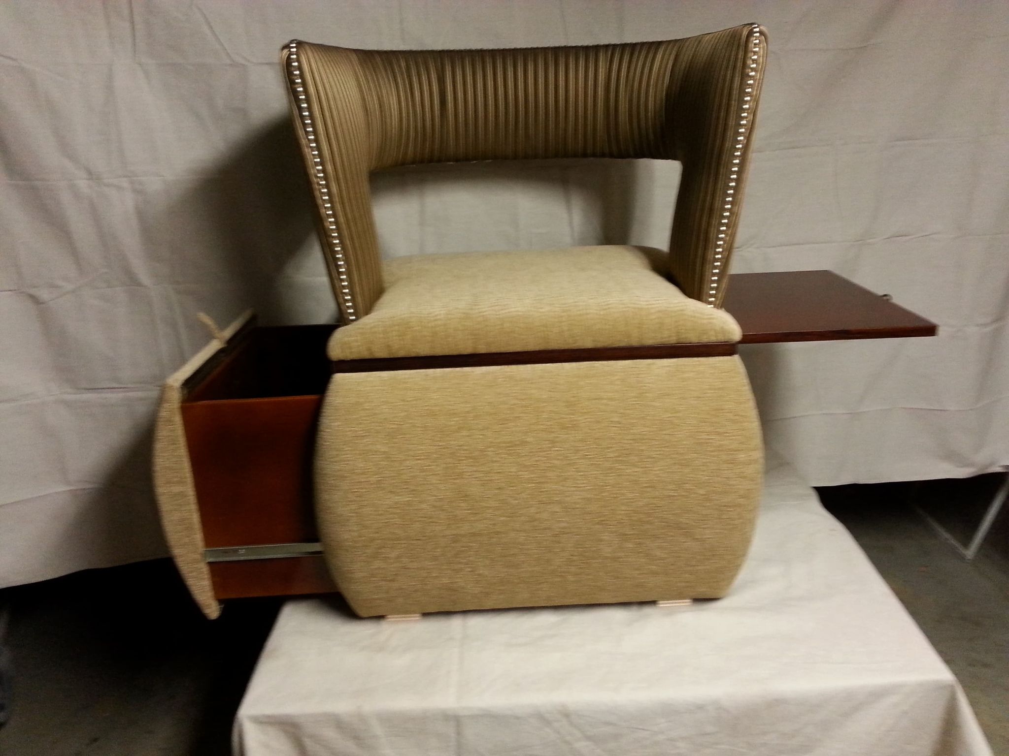 The pictures show two chairs with a pull-out drawer and a table top. The red chair is a 1÷10 scale model, while the beige chair is a 1÷1 scale model. Project number: 031 |